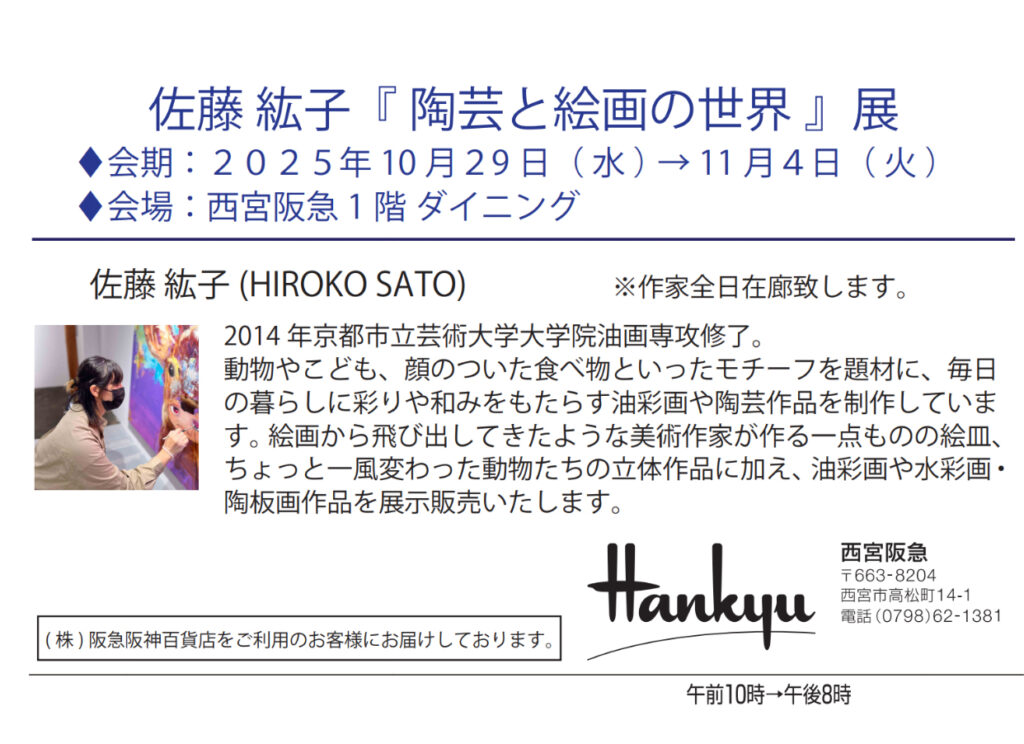 ●西宮阪急 佐藤 紘子『陶芸と絵画の世界 』展